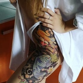 تاتو ذراع مؤقت موديل سمكة وقلب وجمجمة