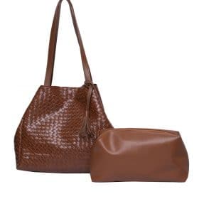 طقم حقيبة ماكياج وحقيبة يد بني فاتح نسائي