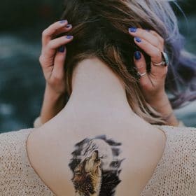 تاتو مؤقت بتصميم ذئب وقمر كامل