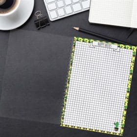 دفتر سلك حلزوني بمربعات مزخرف بصبار وغطاء شفاف