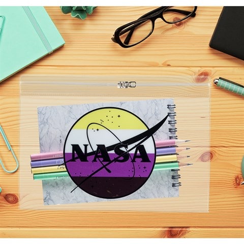 حقيبة تنظيم بطبعة NASA وغلاف شفاف/ مقلمة