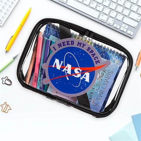 حقيبة تنظيم شفافة مزخرف بتصميم فضاء/ مقلمة