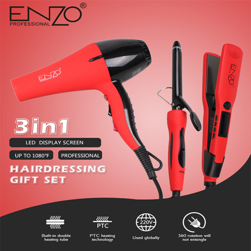 مجموعة إنزو المتكاملة (3 في 1) مجفف شعر,مجعد شعر,مملس شعر