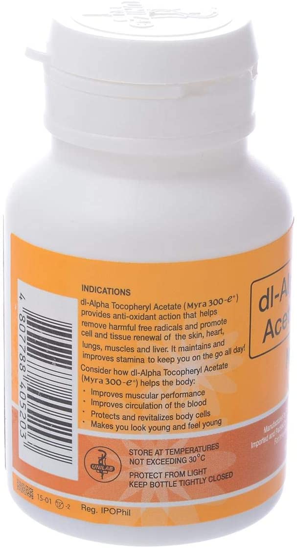 Myra E 300 IU Vitamin E d-Alpha Tocopherol 30 Capsules